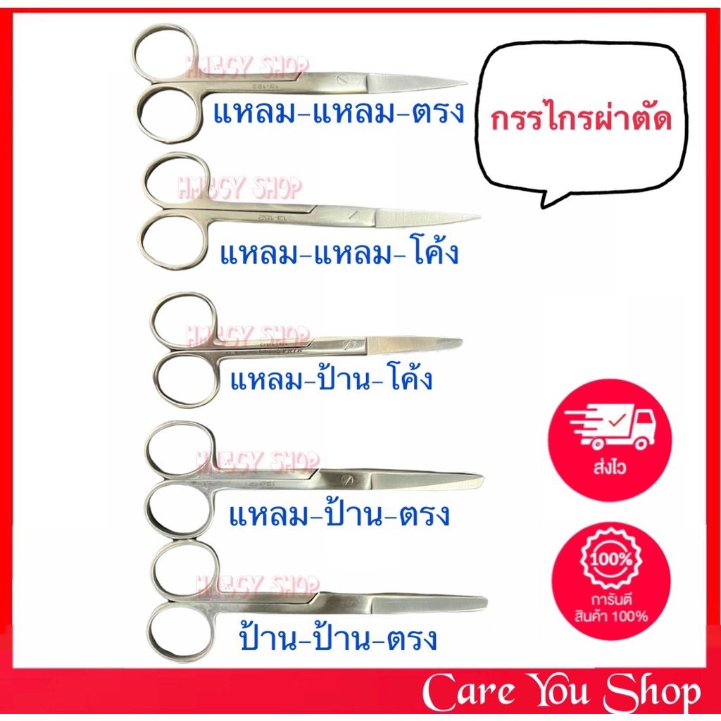 กรรไกรผ่าตัด ปลายโค้ง ปลายมน ปลายแหลม สแตนเลสอย่างดี ((ขนาด 14 cm)) Operating Scissors ครบทุกแบบ