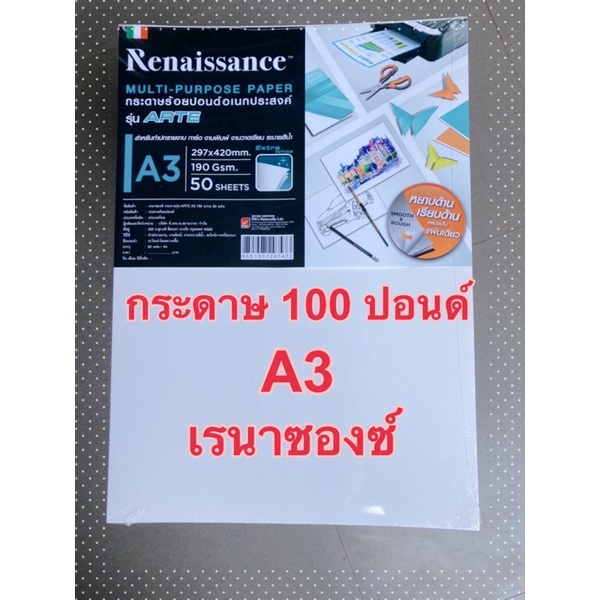 กระดาษวาดเขียนA3 Renaissance 190แกรม (50แผ่น/แพ็ค) กระดาษ 100 ปอนด์ A3,กระดาษอเนกประสงค์ รุ่น ARTE