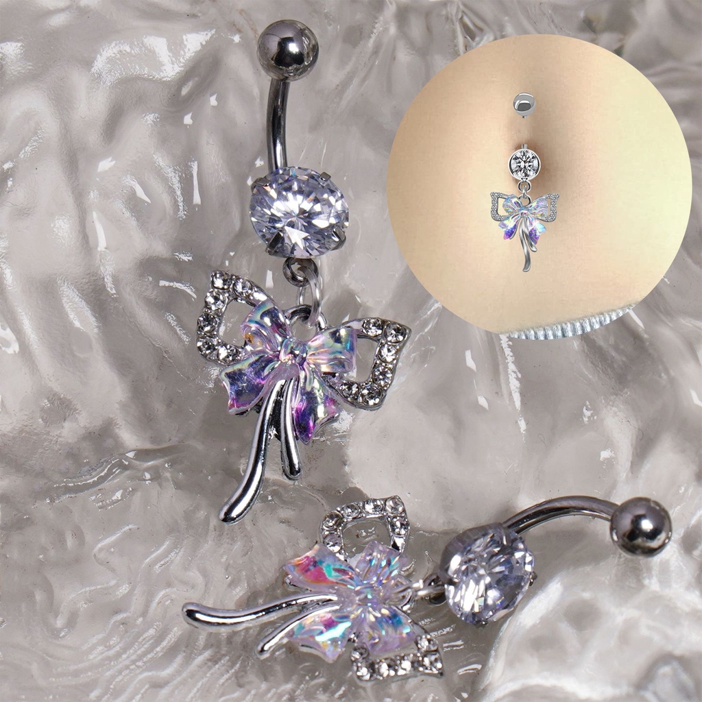 (คลังสินค้าไทย)เครื่องประดับ จิวสะดือ ริบบิ้นโบว์ สเตนเลส ประดับกลิตเตอร์ พลอยเทียม หวานแหวว 1 ชิ้นฤดูร้อนสงกรานต์
