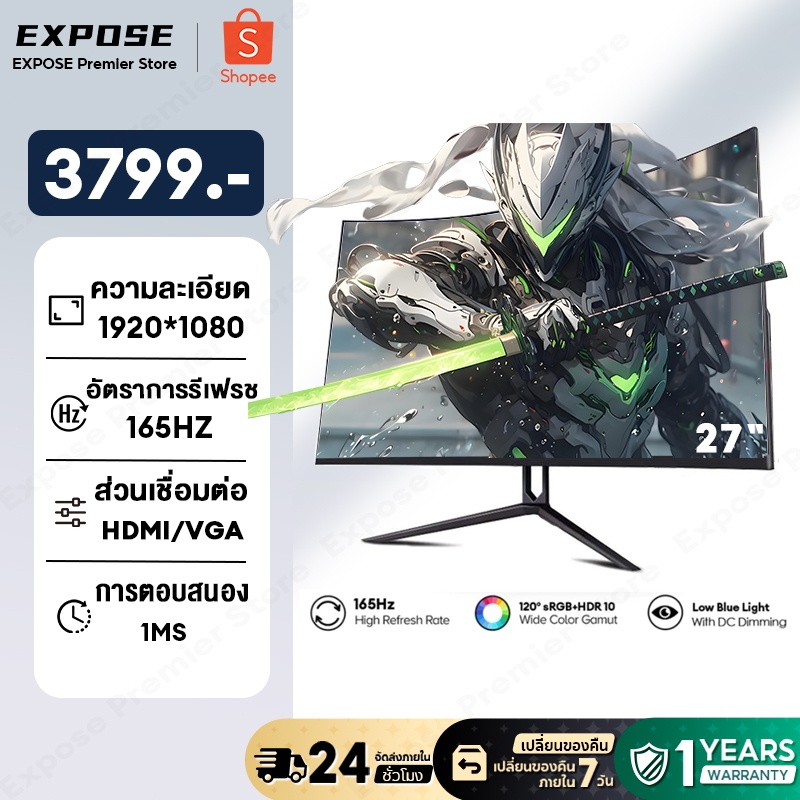 จอมอนิเตอร์ 27 นิ้ว 165HZ MONITOR 24 นิ้ว 165HZ จอคอมพิวเตอร์ โค้ง IPS 1MS เต็มจอไร้ขอบ LED UHD