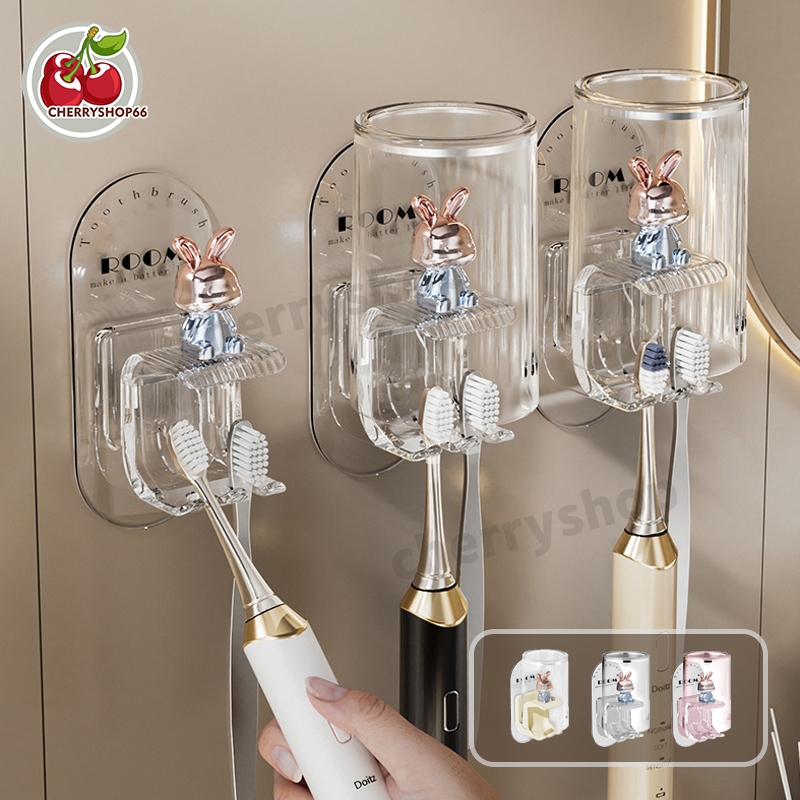 ชั้นวางแปรงสีฟันไฟฟ้า ที่วางแปรงสีฟัน ติดผนัง ใส่แก้ว ลายการ์ตูนกระต่ายน่ารัก ไม่มีกลิ่นเหม็น ติดทน แถมฟรีแก้วน้ำ