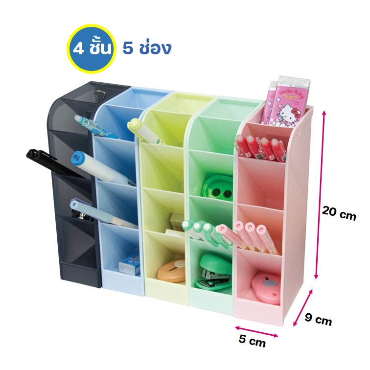 ชั้นใส่ปากกาพลาสติก รุ่น 4 ชั้น 5 ช่อง PXC-882 ขนาด 5x9x20 ซม. ตรา MT คอนโดปากกาถูก pen box