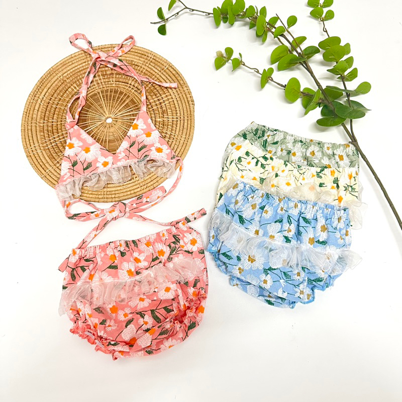 ชุดบิกินนี่เด็กว่ายน้ำ ลายดอกไม้ ขนาดเดียวสำหรับ8-12กิโล