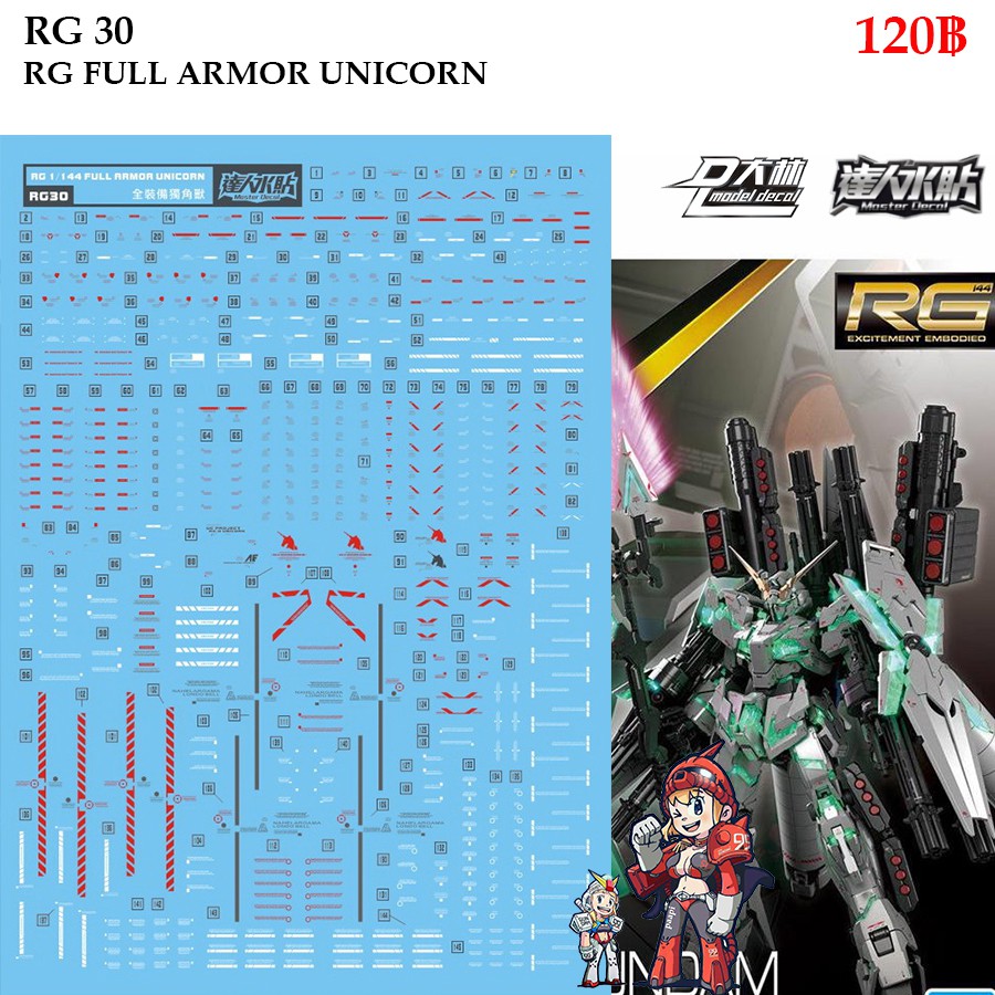 ดีคอลน้ำ [D.L. Darlin] RG30 RX-0 FULL ARMOR UNICORN GUNDAM RG 1/144 Water Decal RG 30