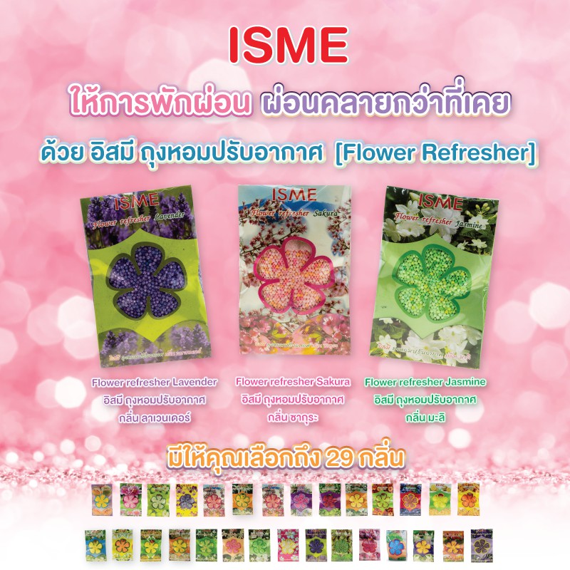 ถุงหอม ถุงหอมปรับอากาศ ขนาด ( 50 กรัม ) มี 29 กลิ่น อิสมี ถุงหอม ให้กลิ่นหอม ในห้องนอน ห้องน้ำ ห้องครัว Flower Refresh