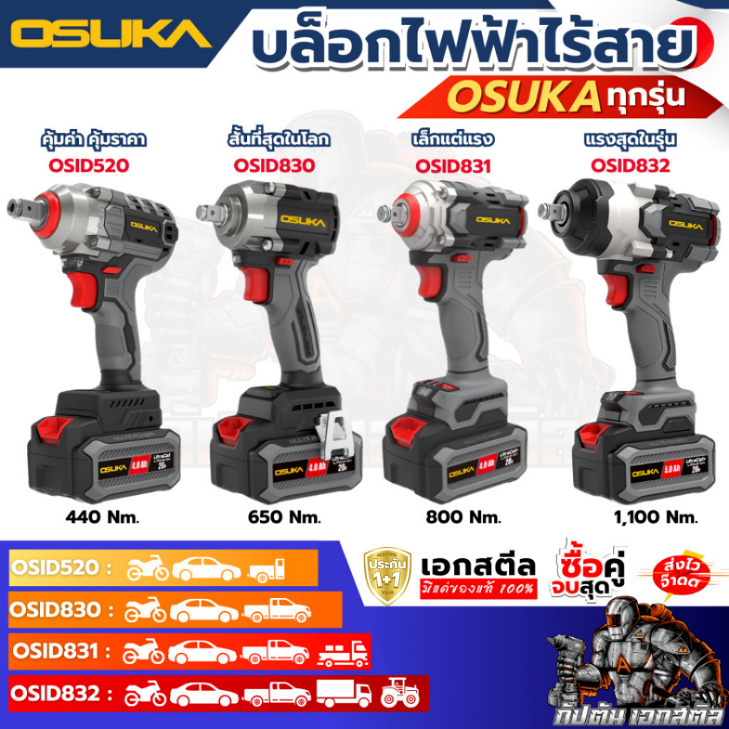 (ถูกสุด) OSUKA บล็อกไฟฟ้า ไร้สาย OSID-520 LT520 OSID830 OSID831 OSID832 ประกัน1+1ปี