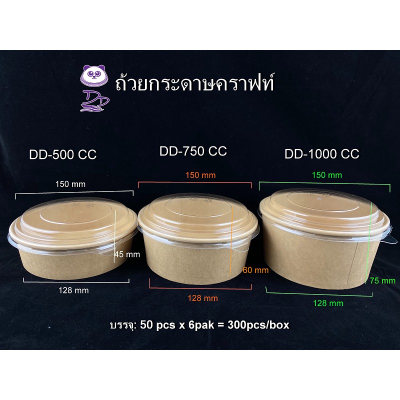 DD ถ้วยกระดาษคราฟท์พร้อมฝา(50 ชุด) ขนาด 500ml 750ml 1000ml 1100ml 1300ml