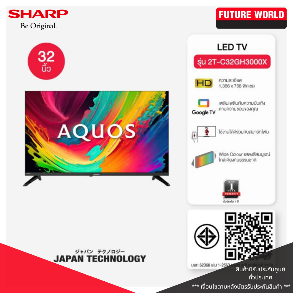 ทีวี SHARP รุ่น 2T-C32GH3000X HD, LED, ระบบ GOOGLE TV ขนาด 32 นิ้ว
