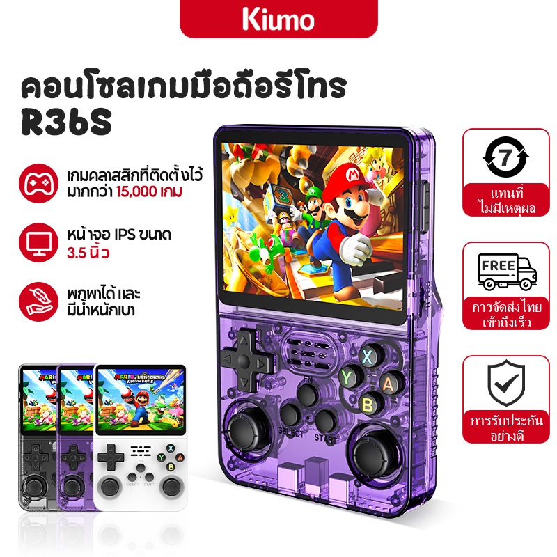 คำอธิบาย: 🎮 สัมผัสมนต์เสน่ห์ของเกมย้อนยุคด้วยคอนโซลเกมพกพา R36S รุ่น Retro ที่มีขนาดกะทัดรัดแต่มีพลังเต็มเปี่ยม ออกแบบมาเพื่อผู้ที่รักในความทรงจำเก่าและเกมเมอร์รุ่นใหม่ที่ต้องการสนุกสนาน ด้วยเกมคลาสสิกกว่า 15,000+/17,000+ เกมจากแพลตฟอร์มต่างๆ เช่น NES, SNES, PS1, PSP และ GBA คุณจะได้สัมผัสความบันเทิงไร้ขีดจำกัดที่ปลายนิ้ว หน้าจอ IPS HD ขนาด 3.5 นิ้วให้ภาพสีสดและรายละเอียดคมชัด ขณะที่โปรเซสเซอร์ Quad-Core RK3326 ทำให้การเล่นเกมลื่นไหล ไม่มีความหน่วง แม้แต่เกมที่มีความต้องการสูง นอกจากนี้ยังมีหน่วยความจำ MicroSD ที่สามารถขยายได้สำหรับปรับแต่งคลังเกมของคุณให้ตรงกับความชอบส่วนตัว การควบคุมที่ออกแบบมาให้สบายมือ และตัวเครื่องที่กะทัดรัด พกพาง่าย ทำให้ R36S เป็นเพื่อนเล่นเกมที่สมบูรณ์แบบสำหรับการเล่นเกมระหว่างเดินทาง ไม่ว่าจะเป็นการย้อนกลับไปยังเกมคลาสสิกที่คุณโปรดปรานหรือการค้นพบเกมใหม่ๆ ที่น่าสนใจ สเปค: รุ่น: R36S สี: โปร่งใสสีม่วง, โปร่งใสสีดำ, สีขาว (มีให้เลือก) โปรเซสเซอร์: RK3326 ซีพียู: 64-bit, Quad-Core A35, ความเร็วสูงสุด 1.5GHz จีพียู: Mali-G31MP2, 520MGz อินพุต: 5V/2A ความจุแบตเตอรี่: 3200mAh หน้าจอ: 3.5" IPS, ความละเอียด 640×480 ระบบ: Linux-based, ArkOS 2.0, รองรับอีมูเลเตอร์กว่า 21 ตัว การควบคุม: จอยสติ๊กคู่, D-Pad, ปุ่ม ABXY, ปุ่มไหล่ 4 ปุ่ม ⚠⚠ สิ่งที่ควรทราบ ⚠⚠ ⚠ กรุณาอย่ากดปุ่มใดๆเมื่อเปิดโทรศัพท์ ⚠⚠ อย่าใช้การชาร์จแบบเร็วในการชาร์จ ⚠⚠⚠ การ์ดหน่วยความจำวางอยู่ภายในเครื่อง คุณจะไม่เห็นการ์ดหน่วยความจำเมื่อได้รับสินค้า (สำหรับ 64G มองเห็นช่องใส่การ์ดด้านหนึ่ง และสำหรับ 128G มองเห็นช่องเสียบการ์ดด้านซ้ายและขวา) ⚠⚠⚠⚠ ลูกค้าได้รับ 128G ป้ายสินค้าของทางร้านคือ 64 Dual Card (ป้ายจีน) ไม่ใช่สินค้าผิด ⚠⚠⚠⚠⚠ คุณสามารถตั้งค่าภาษาของเกมคอนโซลนี้ได้ หากคุณไม่ทราบวิธีดำเนินการและต้องการคำแนะนำ คุณสามารถขอวิดีโอจากร้านค้าได้ ⚠⚠⚠⚠⚠⚠ หากคุณมีปัญหาใด ๆ กับเกมคอนโซลของคุณ โปรดติดต่อร้านค้าก่อน ร้านค้าจะช่วยคุณแก้ไขปัญหาอย่างเต็มที่ ‼ เกี่ยวกับเครื่อง ‼ 64GB: การ์ดหน่วยความจำเดียว ใส่ไว้ในช่องเสียบการ์ดแล้ว ตัวเครื่องมีหน่วยความจำ 32GB + การ์ดหน่วยความจำ 32GB รวมเป็น 64GB 128GB: การ์ดหน่วยความจำคู่ ใส่ไว้ในช่องเสียบการ์ดแล้ว ตัวเครื่องมีหน่วยความจำ 32GB + การ์ดหน่วยความจำ 64GB + การ์ดหน่วยความจำ 32GB รวมเป็น 128GB เนื้อหาภายในกล่อง: 1 x คอนโซลเกมพกพา R36S รุ่นย้อนยุค 1 x การ์ด TF ขนาด 64GB/128GB 1 x สายชาร์จ USB Type-C 1 x ฟิล์มกันรอยหน้าจอ 1 x คู่มือการใช้งาน พารามิเตอร์: ระบบ:ระบบลินุกซ์โอเพ่นซอร์ส อีมูเลเตอร์ในตัว: รองรับ MAME / N64 / PS1 / NEOGEO / / FC / SFC / MD / CPS1 / CPS2 / CPS3 / ฯลฯ ขนาดหน้าจอ: 3.5 นิ้ว MIPI IPS OCA หน้าจอเคลือบแบบเต็ม ความละ