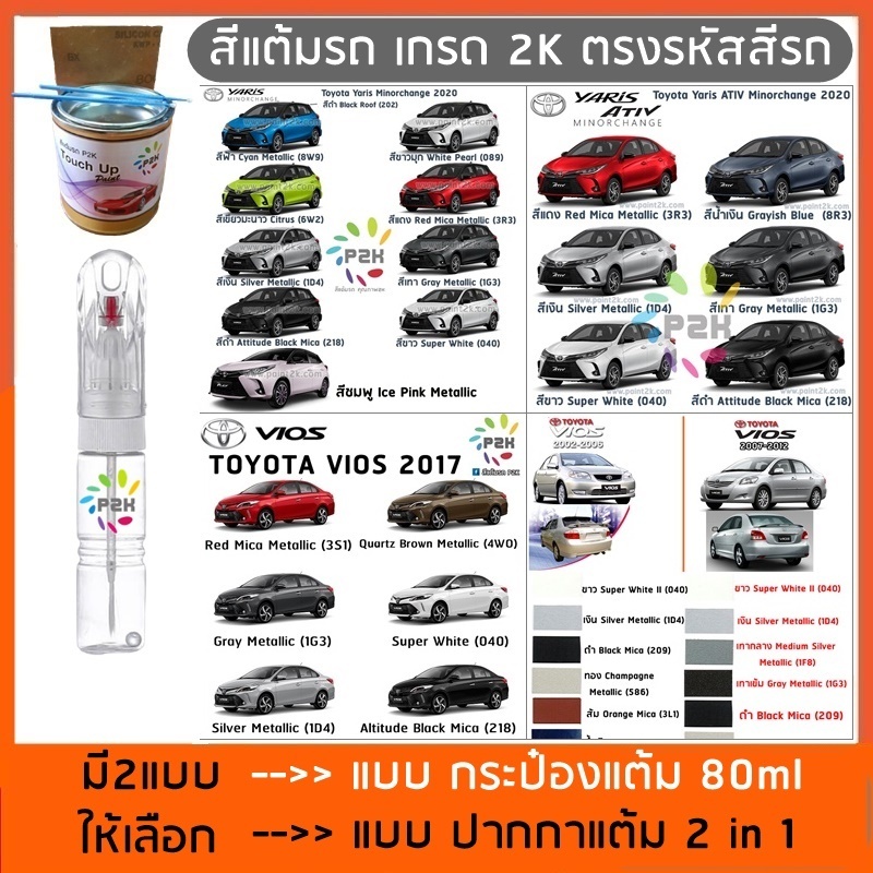 ปากกาสีแต้มรถ ปากกาสีแต้มรถยนต์ สีแต้มรถ TOYOTA VIOS & YARIS วีออส & ยาริส ทุกโฉม ยี่ห้อ P2K