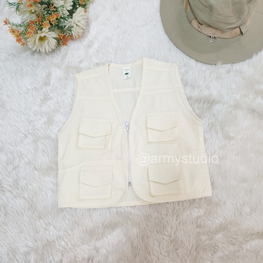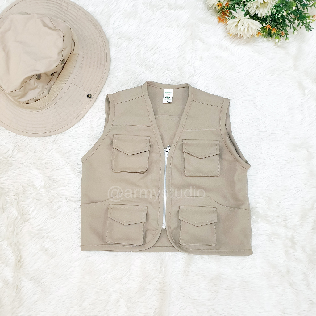 เสื้อกั๊กสำหรับเด็กนักสำรวจ กั๊กซาฟารี สีเอิร์ทโทน