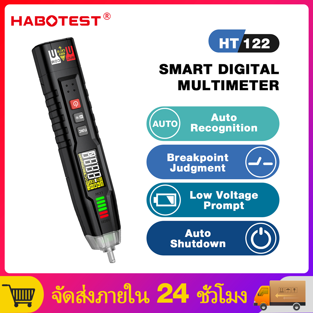 【มาถึงภายใน 3 วัน】HABOTEST HT122 สมาร์ทดิจิตอลมัลติมิเตอร์ DC / AC Voltage Detector ปากกามัลติมิเตอร์