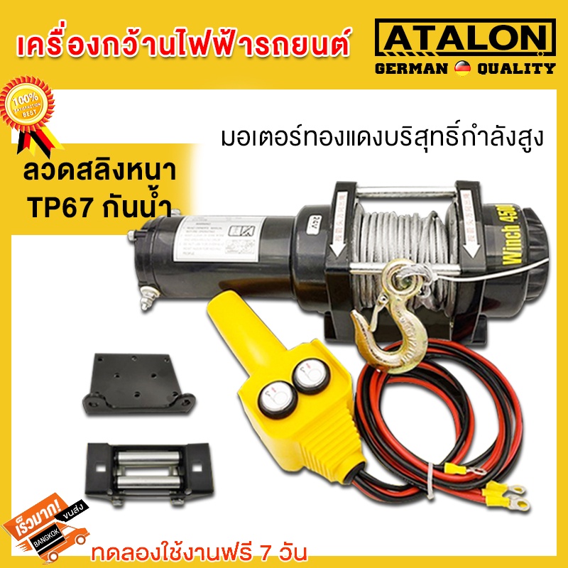 รอกไฟฟ้า 12V 4000LB ใช้งานง่าย กันน้ำมัน ตัวเรือนเหล็กอัลลอย และทนทานมาก มีการรับประกัน