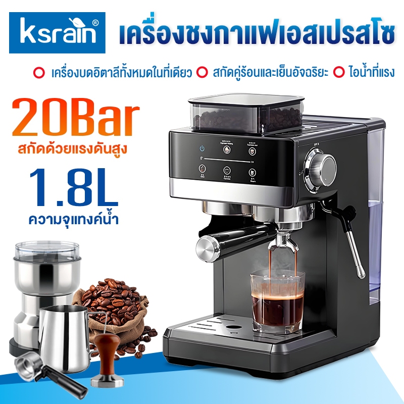 รับประกัน 1 ปี Ksrain เครื่องชงกาแฟ เครื่องชงกาแฟแบบบดในเครื่องเดียว 20bar 1800ML เครื่องชงกาแฟสด เครื่องชงกาแฟอัตโนมัติ