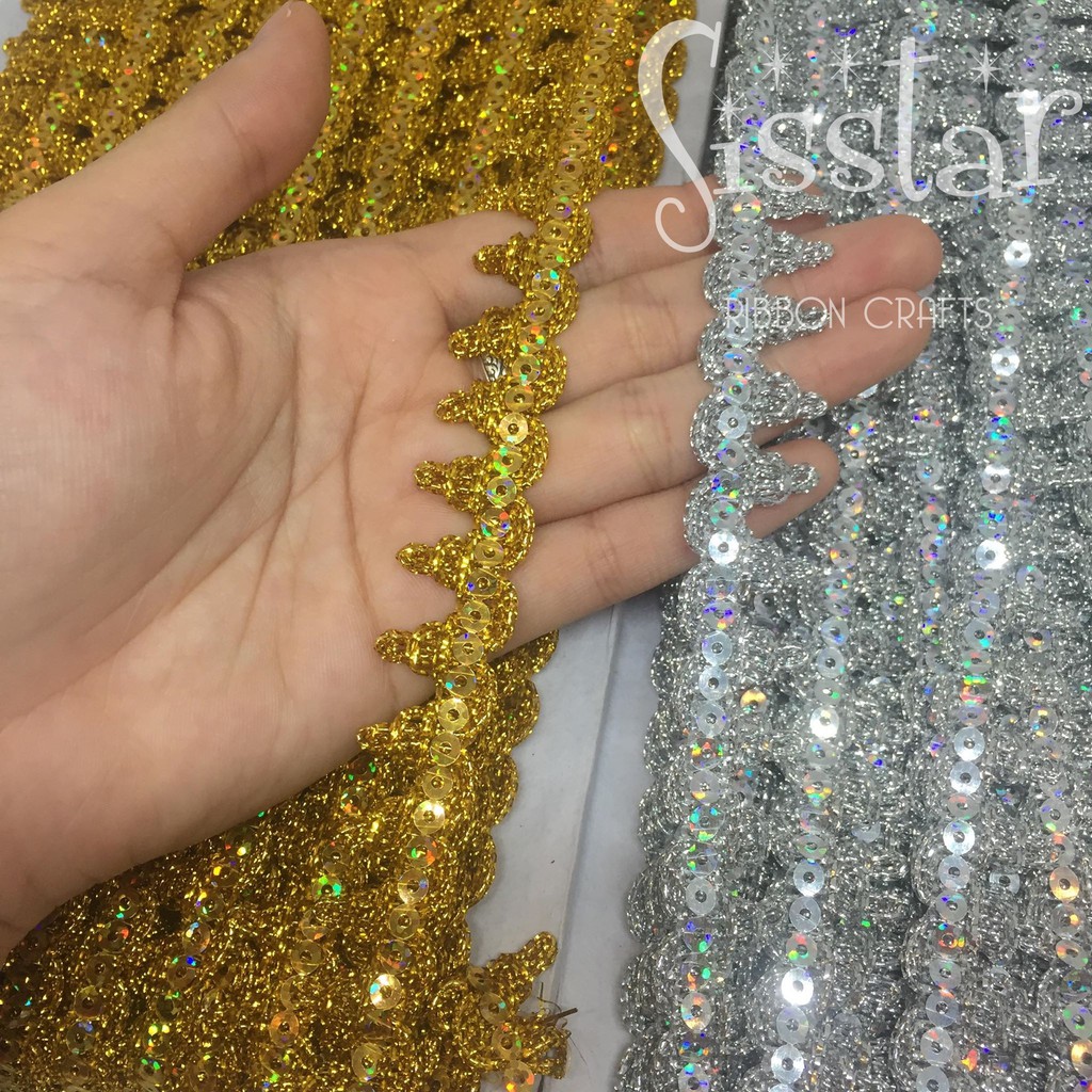 ริบบิ้นลูกไม้สีทอง สีเงิน