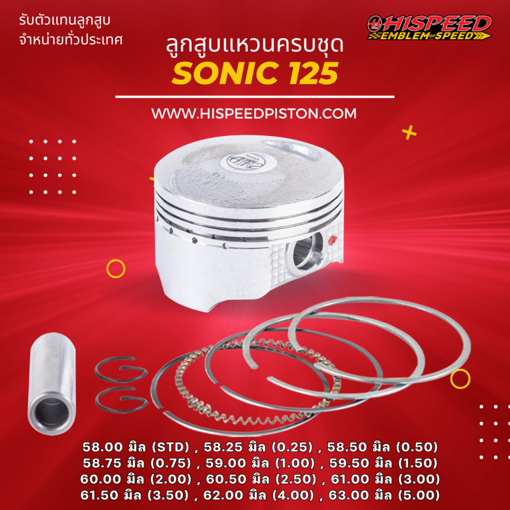 ลูกสูบพร้อมแหวน SONIC (โซนิค) ขนาด 58 - 63 มิล | HISPEED (สินค้ามาตรฐาน)