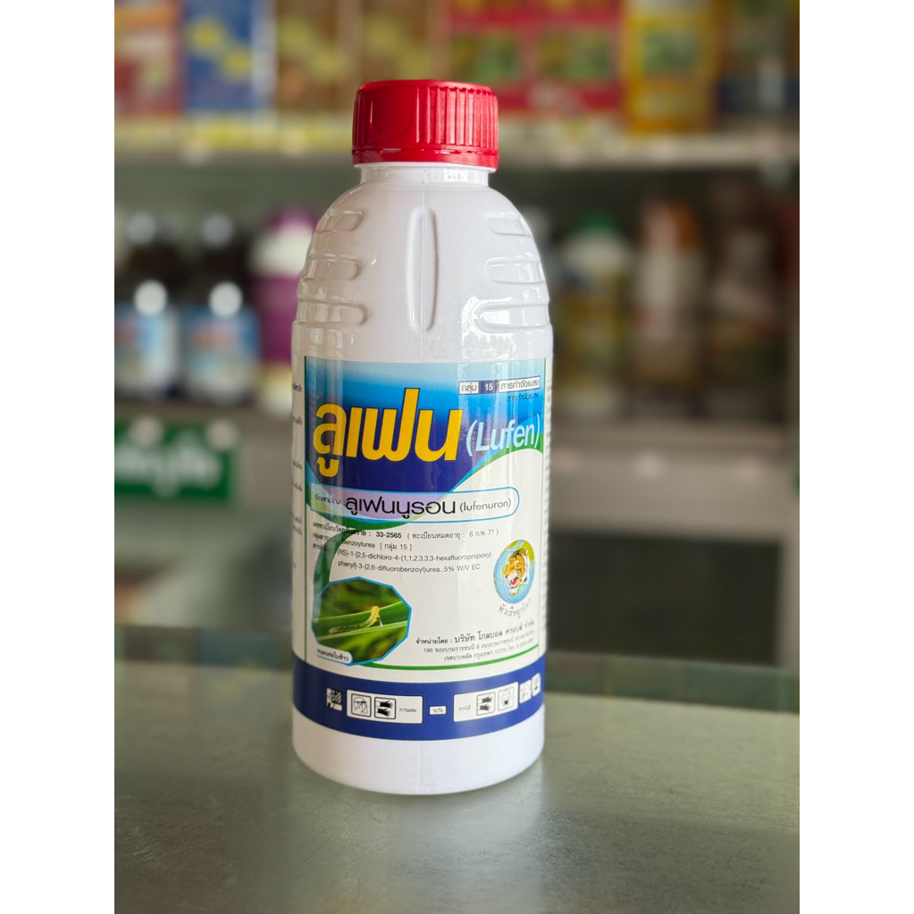 ลูเฟน สาร: ลูเฟนนูรอน 5% EC ช่วยกำจัดหนอนกระทู้ หนอนห่อใบข้าว ยับยั้งการฟักตัวของไข่หนอน เพลี้ย ช่วยคุมไข่หนอน อัตรา: 30-50cc ต่อน้ำ 20lt