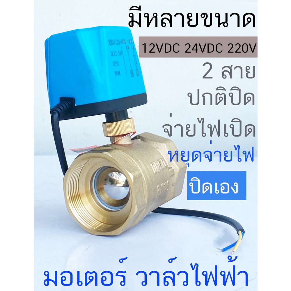 วาล์วฟ้า มอเตอร์ บอลวาล์ว 2สาย เปิดได้ไมต้องอาศัยแรงดันนำ้ ทองเหลือง Ball Valve ปกติปิด (NC) จ่ายไฟเปิด หยุดจ่ายไฟ