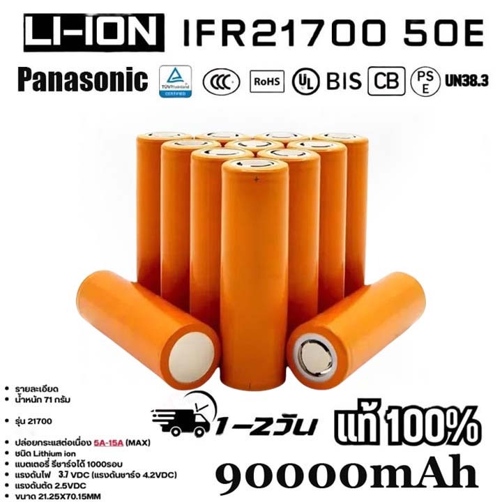 [สินค้าขายดี] ถ่านชาร์จ 21700 Battery 90000mAh แบตเตอรี่ความจุสูง INR21700 50E แบตเตอรี่ Li-ion3.7V ถ่าน สว่าน โซล่าเซล