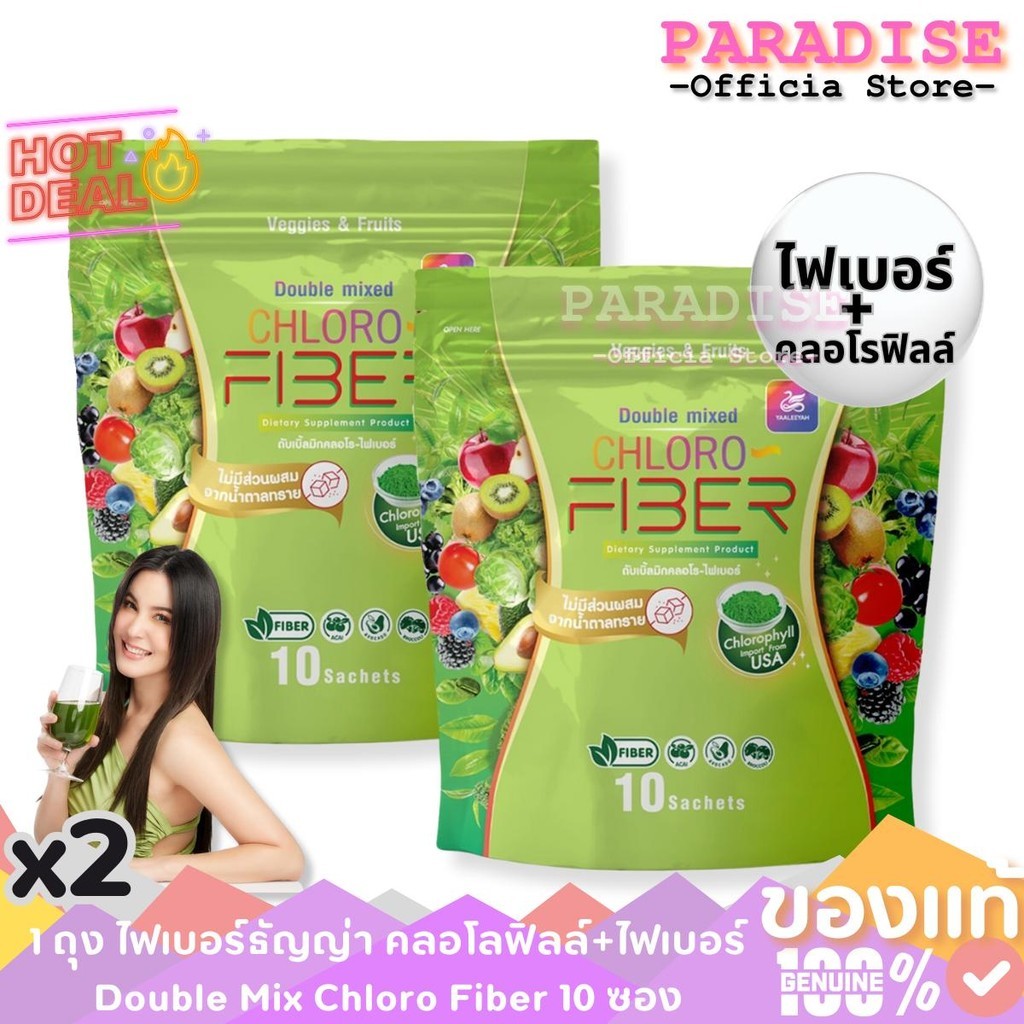 สุดคุ้ม!!! โปร 1 แถม 1 Yaaleeyah CHLORO FIBER ญาลีญ่า คลอโรไฟเบอร์ ไฟเบอร์ธัญญ่า 1 ถุง 10 ซอง