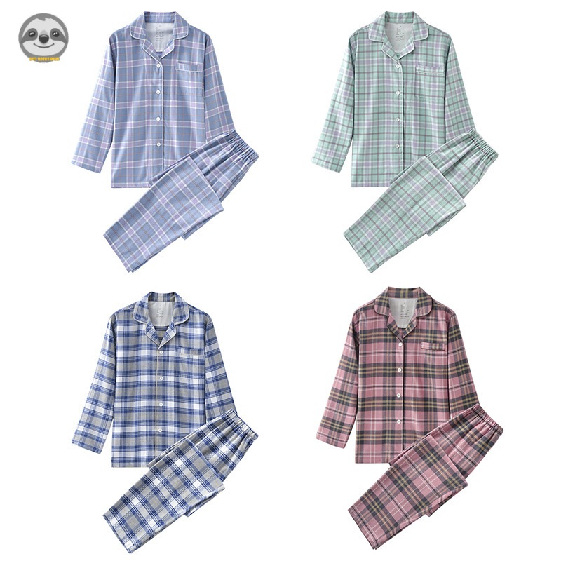 สไตล์ญี่ปุ่น มูจิ สไตล์/ผ้าสักหลาดสด ชุดลําลอง/ชุดนอนคู่ผ้าฝ้ายลายสก๊อต/ฤดูใบไม้ร่วงฤดูหนาวชุดนอนผ้าสักหลาดหนา - รูปที่ 7