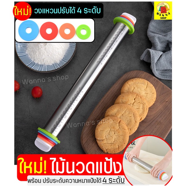 🔥ส่งฟรี🔥 ไม้นวดแป้ง WANNA สแตนเลสแท้ ปรับความหนาแป้งได้4ระดับ! ไม้คลึงแป้ง ที่นวดแป้ง [1117]