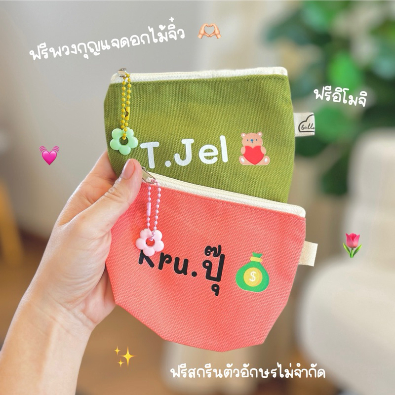 (ส่งไว) 'bunrarat' กระเป๋าสตางค์ กระเป๋าใส่เหรียญ ผ้าแคนวาส สกรีนชื่อได้ ตกแต่งฟรี ของขวัญวันเกิด/รับปริญญา