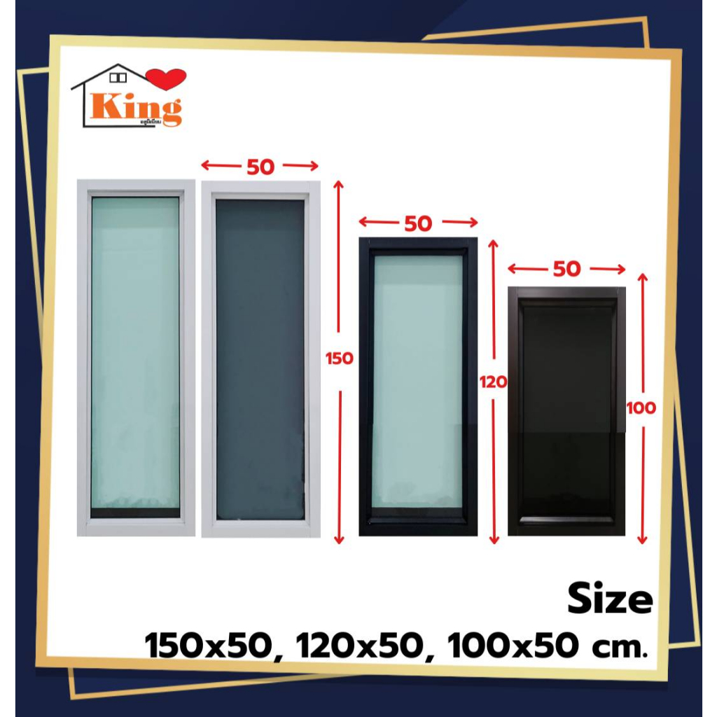 หน้าต่าง อลูมิเนียมช่องแสง[บานตาย] 180x50, 150x50, 120x50, 100x50 cm.[ถูกสวยดีมีคุณภาพ][วงกบขอบใหญ่][สินค้าคุณภาพ]