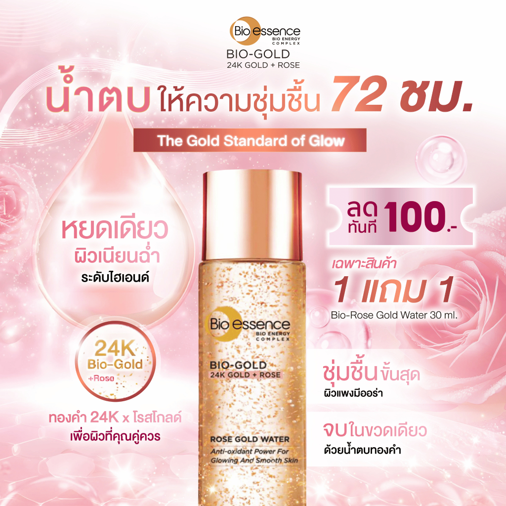 หมดอายุ 11/26 [1แถม1] น้ำตบ Rose gold ผิวอ่อนเยาว์ Bio-essence Bio-Rose Gold Water 30ml ล็อคผิวอิ่มน้ำ 72 ชม.
