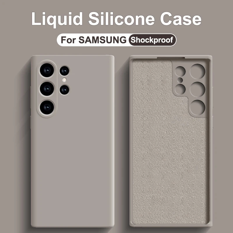 หรูหราซิลิโคนเหลวเคสโทรศัพท์สําหรับ Samsung Galaxy S25 S24 Ultra S23 S22 S21 S20 S10 Plus หมายเหตุ 20 สีทึบป้องกันกันกระแทกนุ่มปกหลัง - รูปที่ 1