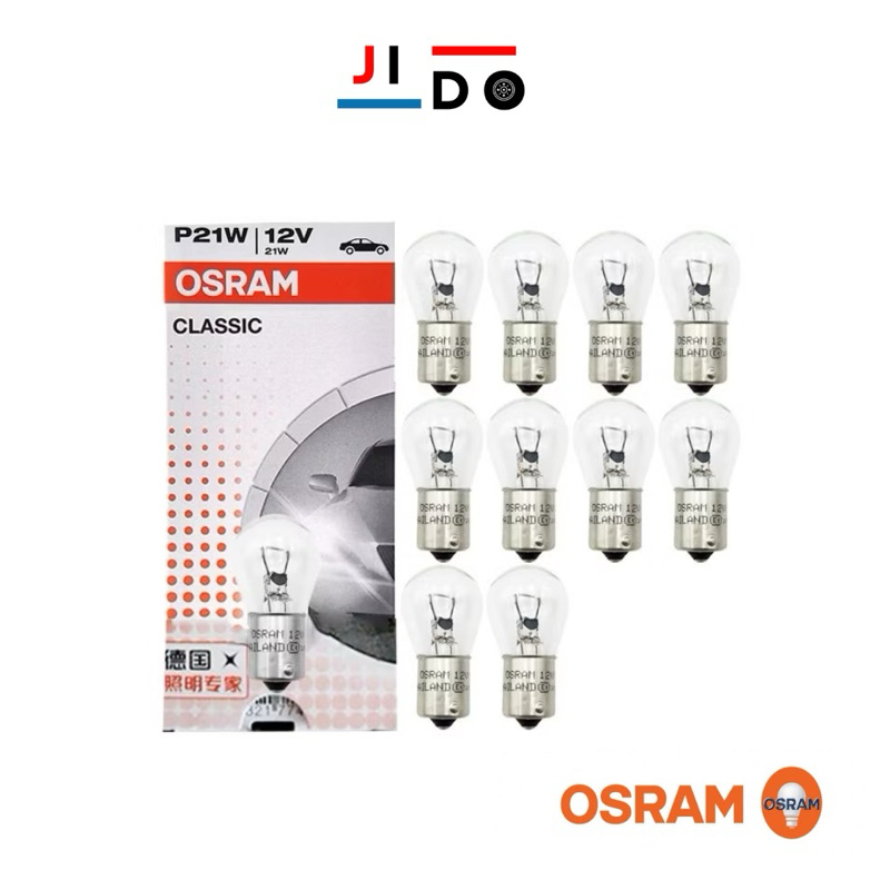 หลอดไฟท้าย OSRAM - 12V 21W 1 จุด 1 ไส้ เขี้ยวเสมอ ( 1 กล่อง 10 หลอด ) รหัสแท้ 7506
