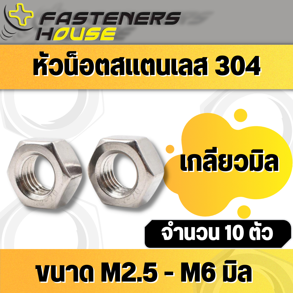 หัวน็อตสแตนเลส เกรด304 M2-M6