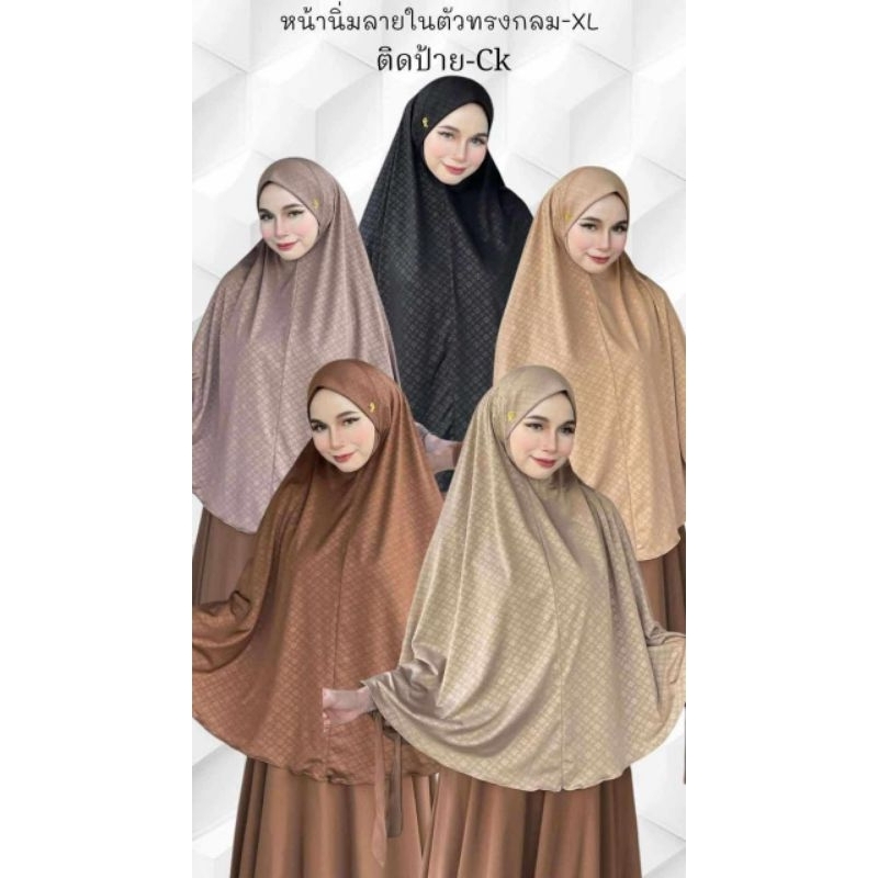 ฮิญาบสวมยืดลายในตัว คละลาย (ทรงกลม XL)