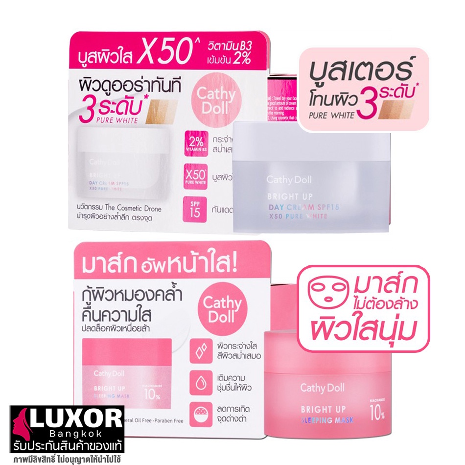 เคที่ดอลล์ เดย์ครีม ไนท์ครีม 30ml/30g Cathy Doll Bright Up Day Cream SPF15 + Sleeping Mask