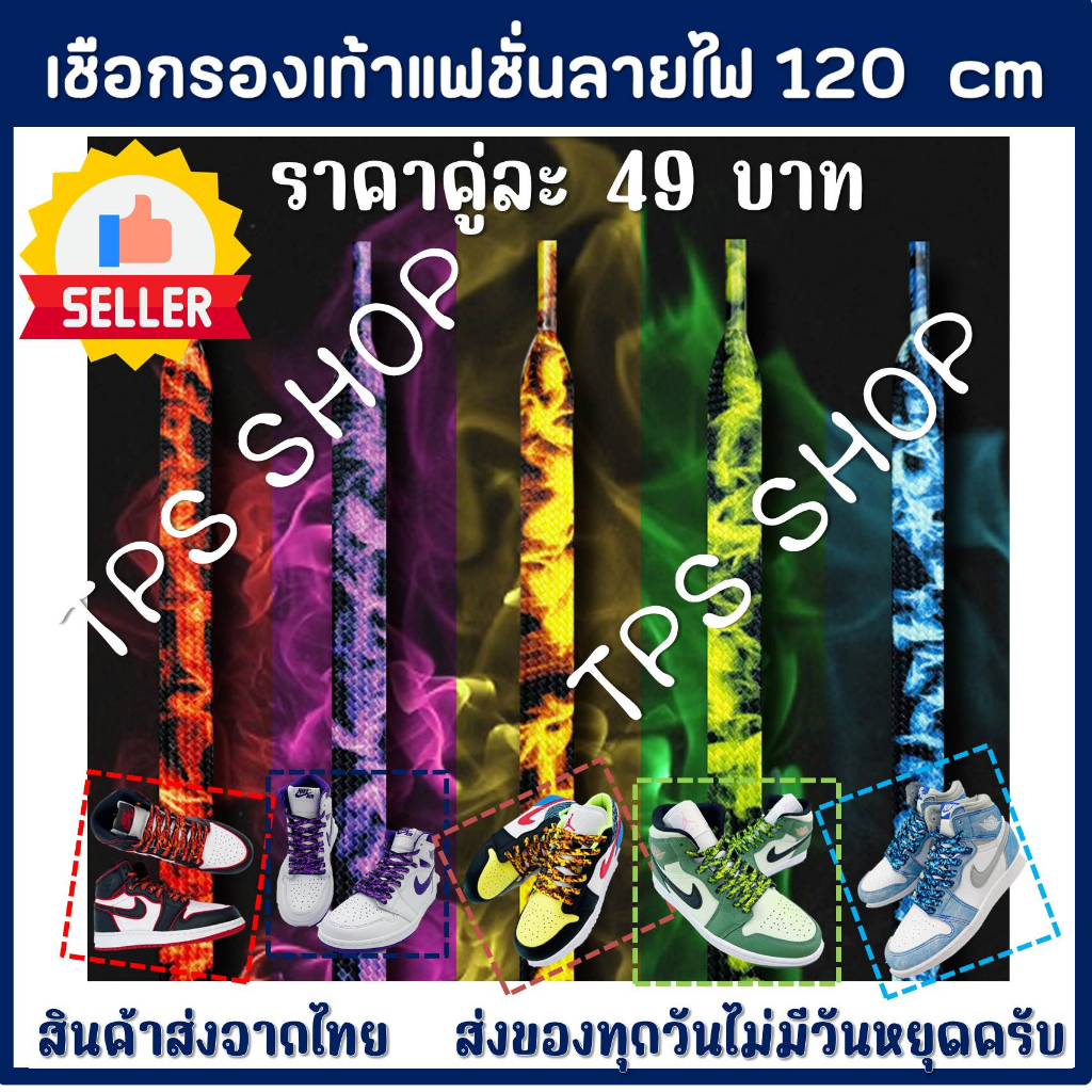 เชือกรองเท้าแฟชั่นลายไฟ แบบเส้นแบน ยาว120cm ได้รับเชือก2เส้น สินค้าส่งจากปรเทศไทย