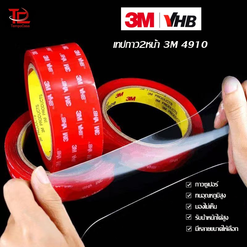 เทปกาว2หน้า3M แบบใส VHB 4910 เหนียวมากมีแรงยึดตืดสูง กันนํ้าทนความร้อนได้ กาวสองหน้า ติดผนัง รถยนต์ ติดไม่ทิ้งคราบ
