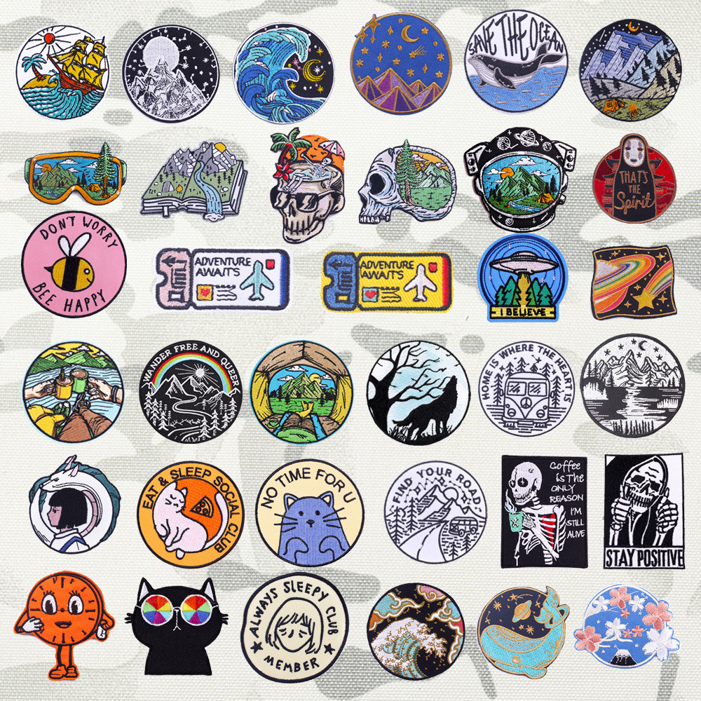 แพทช์ตีนตุ๊กแก ป้ายกระเป๋ากลางแจ้ง คอลเลกชันตั้งแคมป์ Skull Landscape Badge Alpine River Star บุคลิกภาพ Armband DIY เสื้อผ้ากระเป๋าเป้สะพายหลัง Patch