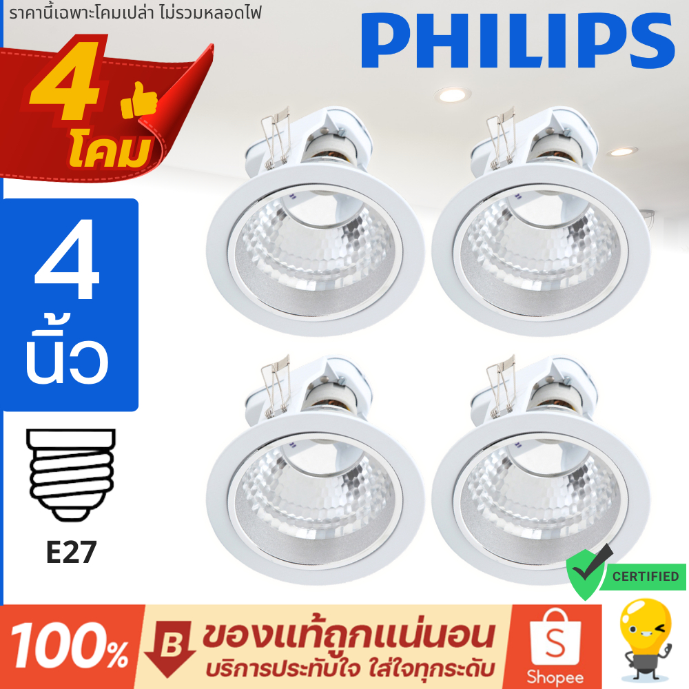(แพ็ค4ตัว) Philips โคมไฟดาวน์ไลท์ 4 นิ้ว 5นิ้ว รุ่น FBS111 FBS115 ไฟหลุม ขั้ว E27