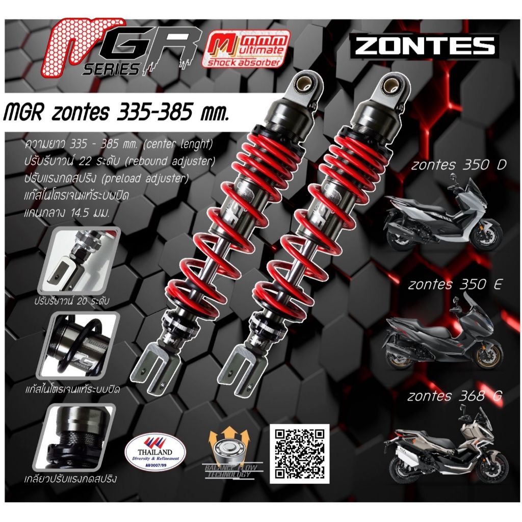 โช้คอัฟ MMM (3M) รุ่น MGR Zontes หูผ่า แก๊สแท้ รีบาวน์จริง (ความสูง 335 - 375มม.) - รูปที่ 1