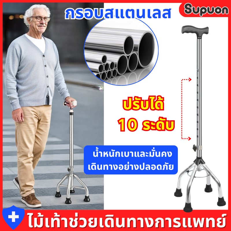 ไม้เท้า ไม้เท้าผู้สูงอายุ ช่วยพยุง ปรับได้10 ระดับ สแตนเลสแบบ3ขา ก้านร่ม ไม้เท้าหัดเดิน ไม้เท้าคนแก่ คนป่วย 3 ขา 4 ขา