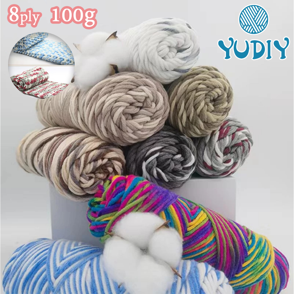 ไหมพรมถักผ้าพันคอ ไหมพรม 8ply นุ่ม ถักง่าย คอตตอนนม ไหมนุ่ม yarn 8 ply/100g