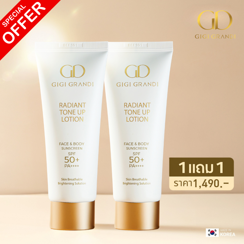 (1แถม1) GIGI GRANDI RADIANT TONE UP LOTION SPF50+ PA++++ จีจี้แกรนด์ดิ โลชั่นกันแดดโทนอัพผิว 100 มล.