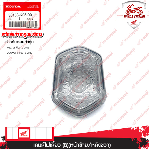 33456K26901 เลนส์ไฟเลี้ยว (B)(หน้าซ้าย/หลังขวา) อะไหล่แท้ HONDA MSX125ปี2012-2015,ZOOMER-Xปี2012-2019