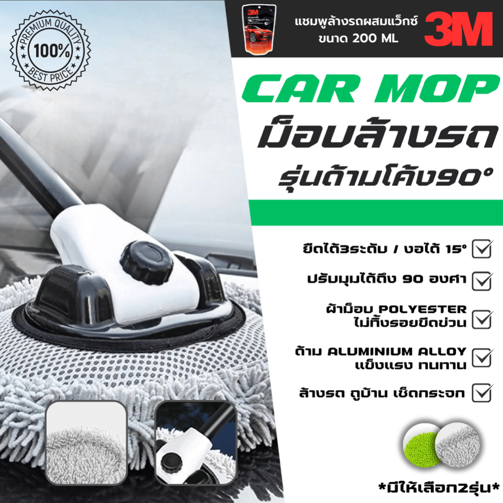 3M CAR MOP ไม้ม็อบล้างรถยนต์ด้ามอลูมิเนียม ยืด 4 ระดับ ปรับองศา โค้งงอได้ แปรงล้างรถ รถยนต์ ล้างรถ