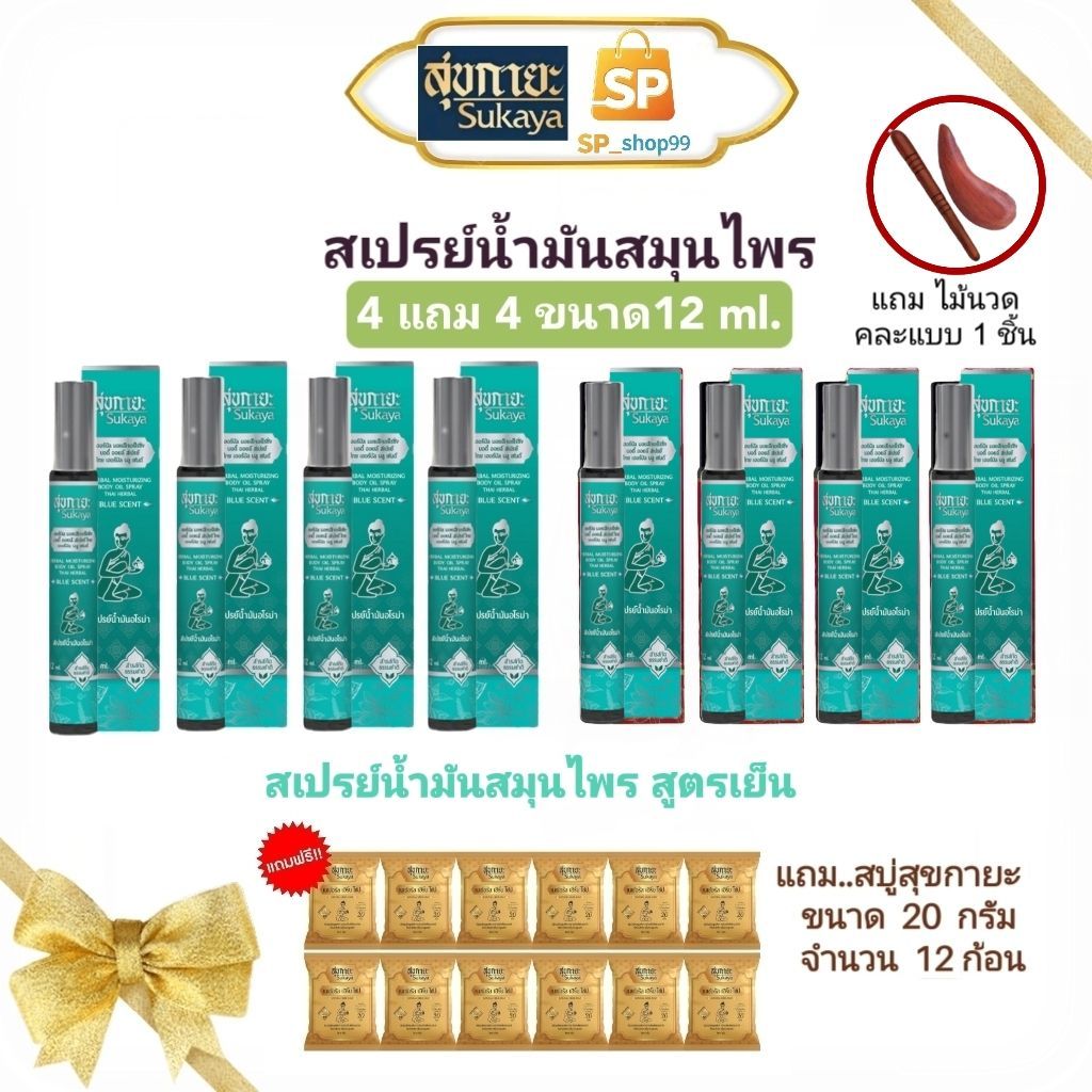 ( 4 แถม 4) สุขกายะสเปรย์ Sukaya Spray สเปรย์น้ำมันสมุนไพร (สูตรเย็น) 12 ml. สเปรย์ข้อเข่า ตำรับวัดโพธิ์ ปวดเฉพาะจุด