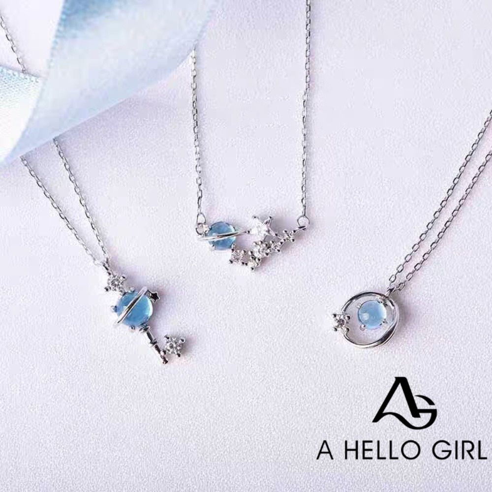 A HELLO GIRL สร้อยคอแฟชั่น รูปดาวเคราะห์ ประดับคริสตัล สีฟ้า สีชมพู