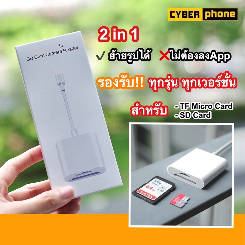 Adapter ย้ายรูปเข้ามือถือ IP / USB-C to SD Card Camera Reader 2 in 1 OTG ( photo Micro TF Video MicroSD ) ( Cyberphone )