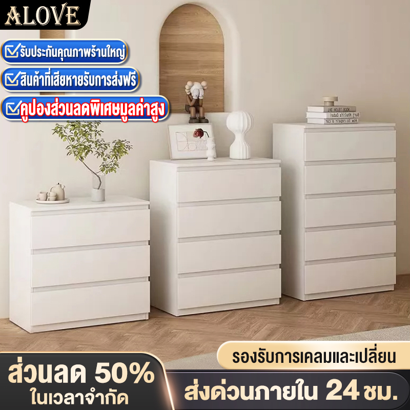 ALOVE [ไม้เนื้อแข็ง]ตู้เตี้ย ตู้ลิ้นชักส3/4/5ชั้น ดีไซน์เรียบหรู สไตล์มินิมอล พื้นที่เก็บข้อมูลขนาดใหญ่พิเศษ