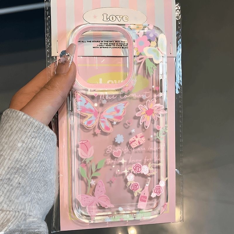 AWIFI🔥สีไล่ระดับสีผีเสื้อชมพูตัวเรือนคันธนูใช้งานร่วมกับ IPhone17 16 15 11 13 12 14 Pro Max 14 7 8PLUS 16Plus XR X XSMax - รูปที่ 1