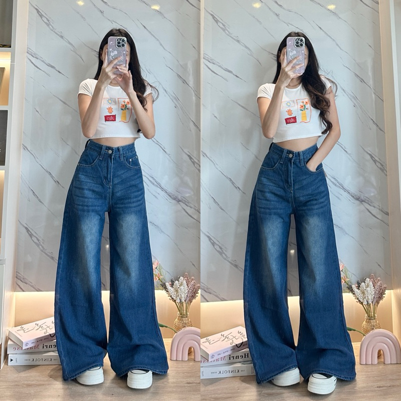 Baggy Jeans : CHANA สีเข้มเฟด “ #018 (B532) กางเกงยีนส์ขาบานเอวสูง งานเทรนด์รุ่นขายดี ผ้าไม่ยืด